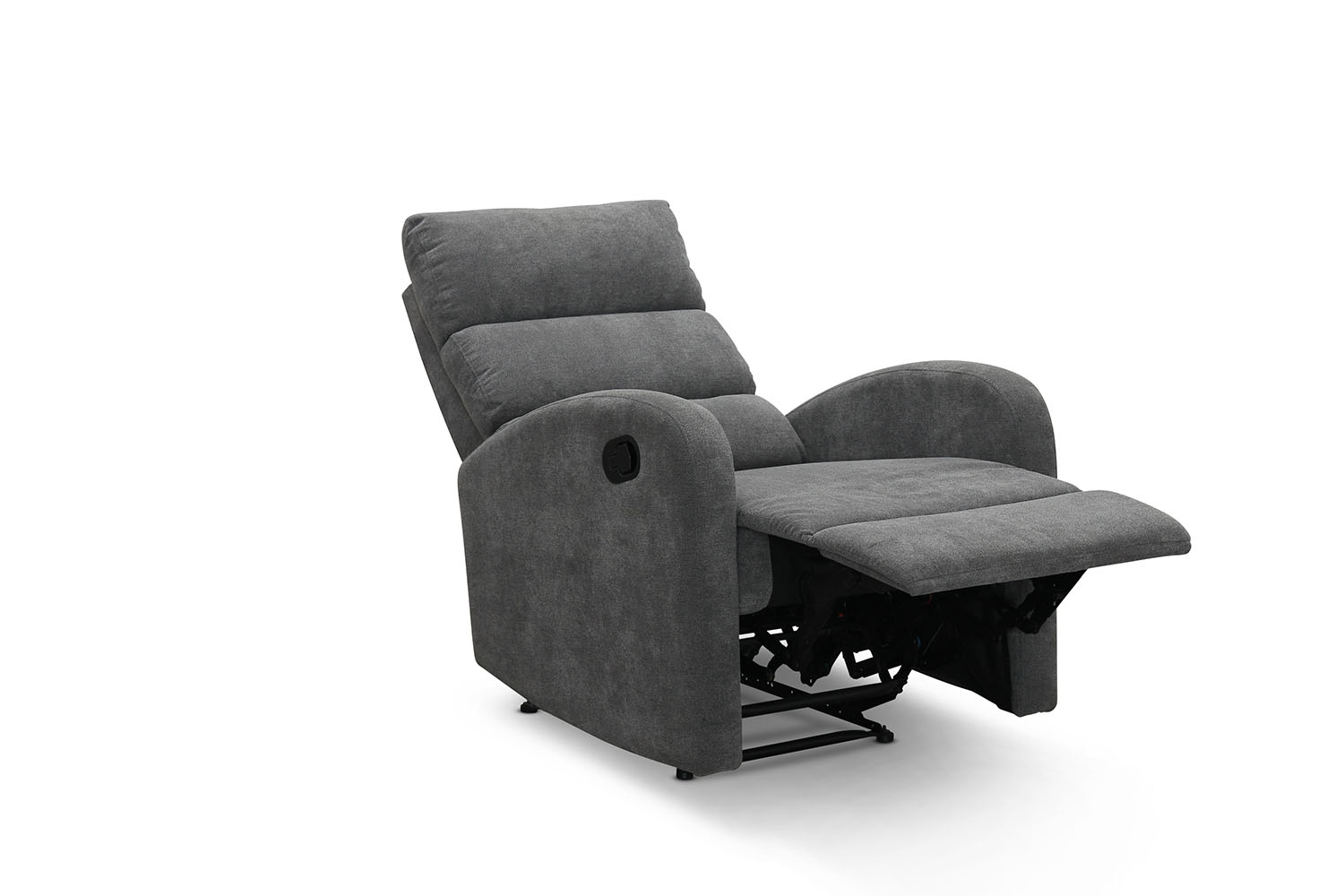 Bekväm fåtölj med pushbakrecliner. Finns i svart PU och tyg.